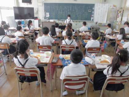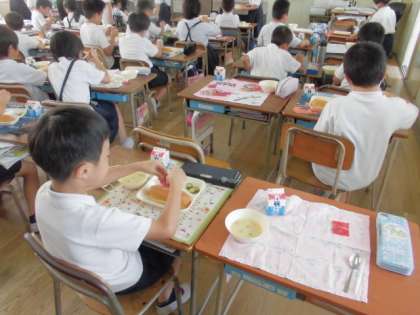 とてもいしくいただきました。きゅうりには、バジルがしっかり入っていて風味豊かな味わいでした。写真は3年生の様子です。