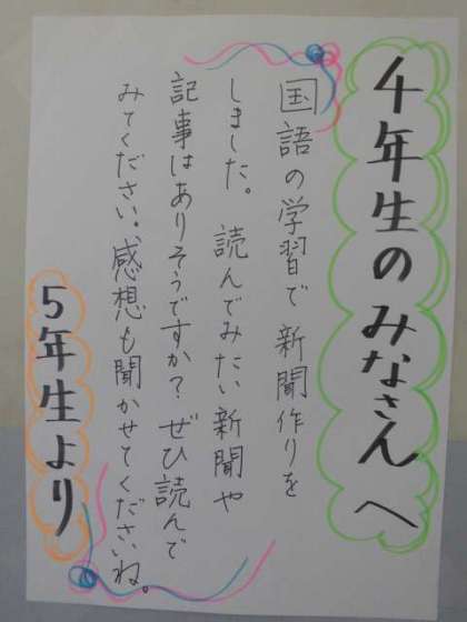 4年生の新聞づくりが今から楽しみになってきました。