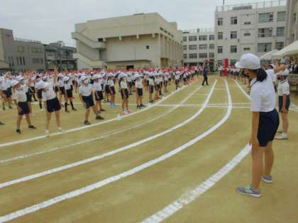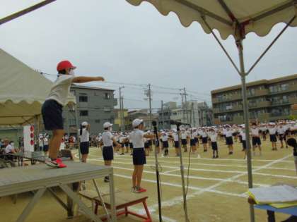代表の児童を見ながら、音楽にあわせてしっかりラジオ体操をすることができました。