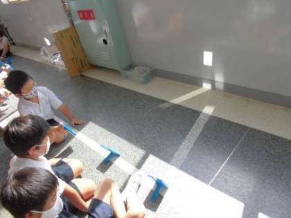 太陽の光を反射して、温かさを確かめていました。