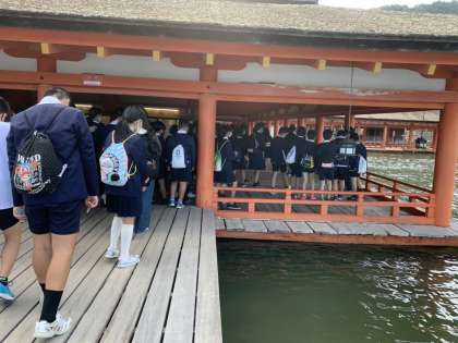 厳島神社を見学しています。