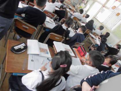 たくさんの先生に囲まれて子どもたちは少し緊張していましたが、担任の先生の指示をしっかり聞いて活動しました。