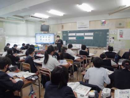 今日は、英語の学習で、自分の町にあるものの紹介をしました。そのあとは、あってほしいものを書く活動もしました。