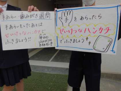 休み時間には、保健委員会のみなさんが手洗いをするように声掛けをしてくれました。