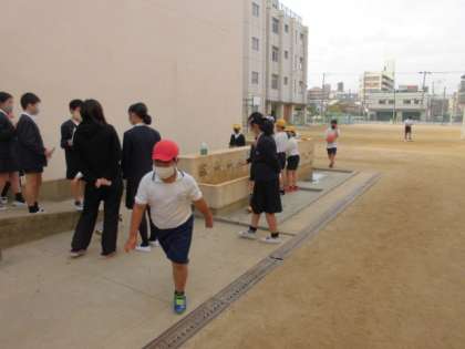 戻ってきた子どもたちもしっかり手洗いをしていました。