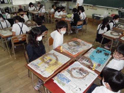 今日は、リースづくりをしました。