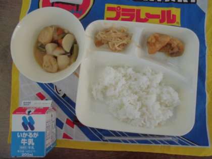 あげ鳥のネギだれかけは、一度から揚げしたとり肉に、ネギ、しょうゆ、砂糖などの調味料で味付けしたたれと絡めていただきます。ご飯のおかずにはピッタリの献立でした。