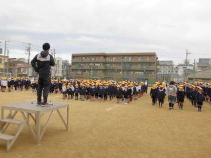 時間になる前に子どもたちは並んでいました。整列の掛け声も1回で並ぶことができていました。