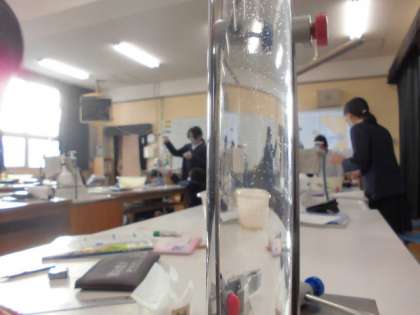 大きな透明の筒に、少しづつ食塩を溶かしていきました。