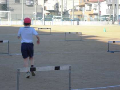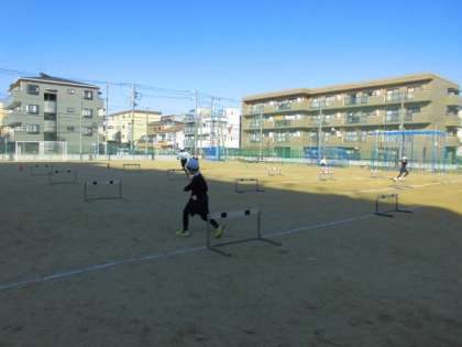 ハードルの間隔が広いところと狭いところを作りました。