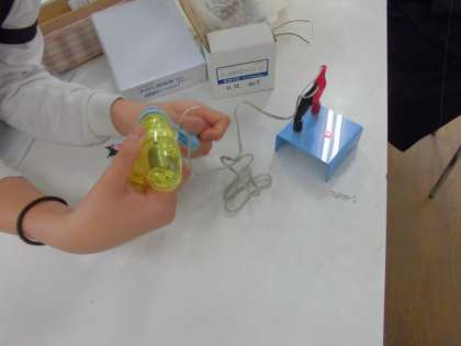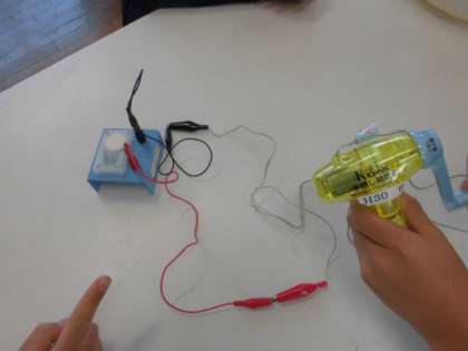 モーターを使うと、電気がつくことやプロペラを回せること、オルゴールが聞けることを確認しました。
