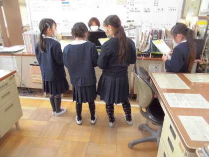 今日、2年生の小さな記者さんたちが、校長室と職員室に取材に来ました。