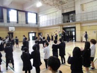 今まで給食の準備を6年生が行っていましたが、今日から一緒に準備を始めました。