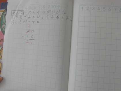 10の位から1かりて、という仕組みをしっかり覚えていきました。