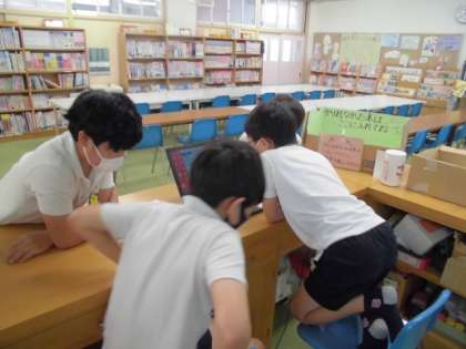 図書館開放があったので、図書室で本を読んでいました。また、2年生では、アメリカザリガニの世話をしていました。あっという間の20分間でした。