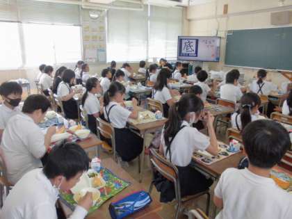 海に囲まれている日本では、昔から海藻が食べられていました。給食にもいろいろな海藻が登場します。今日は、わかめ、茎わかめ、コンブ、赤とさかのりを使ったサラダです。