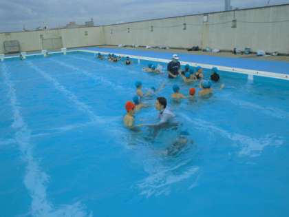プールに入って、かけっこや水中にもぐったりして活動しました。