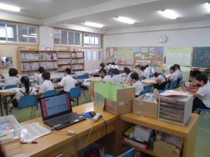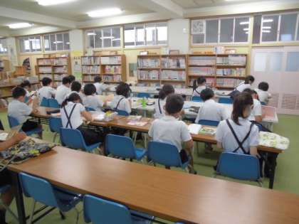 はじめは、なかなか本が決まらない子もいましたが、決まったら自分の席に戻って読書をしました。机の上には、春に配られた読書ノートもありました。しっかり読書頑張ってくれています。