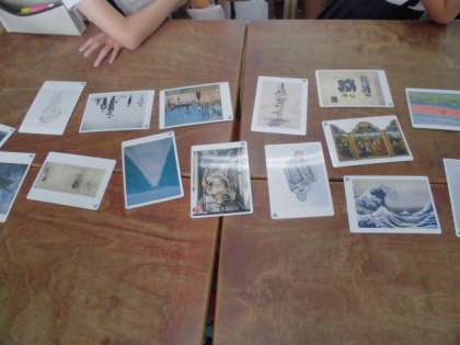 多くの作品をカードにして、作品のよさをゲーム形式にして発表しました。