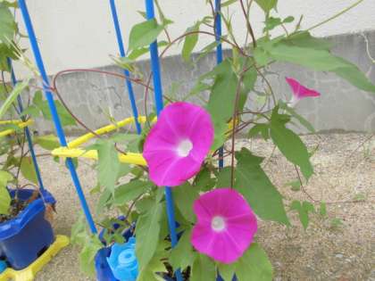 今日は、あさがおの花を集めていたので、それを絞って、色水遊びをしました。