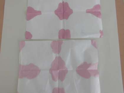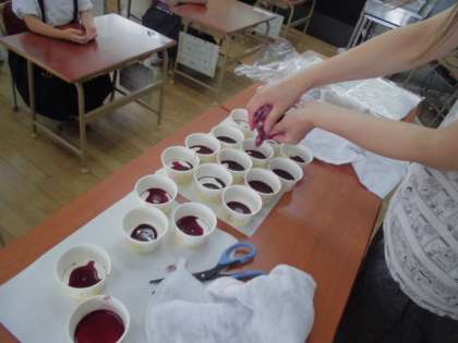 カップに少しずつ入れてもらい、染めていきました。とてもきれいにできました。