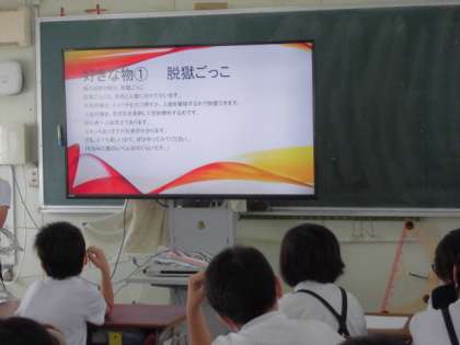 今日は、自分の好きなものをプレゼンテーションソフトを使って一人一人が作成しました。