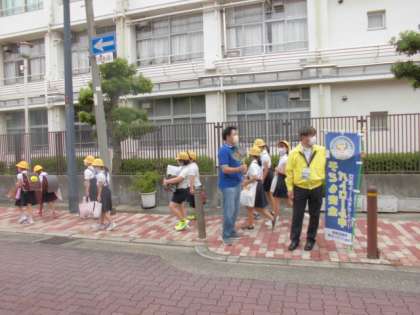 今日は、登校時に、地域の方々や警察署の方々が、子どもたちの登校の安全の見守り活動や安全指導を行ってくださいました。