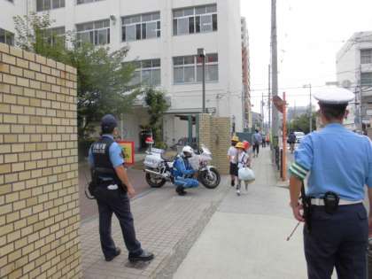 また、始業式の中で、大阪府警の方から安全な登校についての話もいただきました。