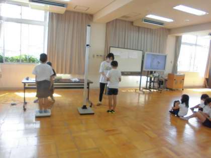 擦り傷の時は、水道の水で洗うことや、目にゴミが入ったら、絶対にこすらないことなど学習しました。そのあとつめの検査、身長、体重を測りました。