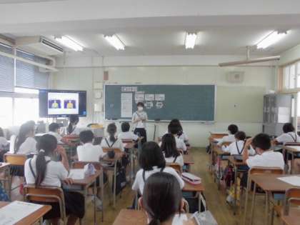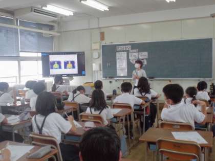今日は、栄養教諭を招いて栄養指導を受けました。