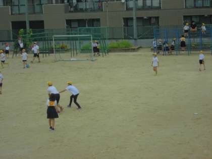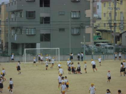 運動場が使えるようになり、元気いっぱいの子どもたちが運動場で遊んでいます。