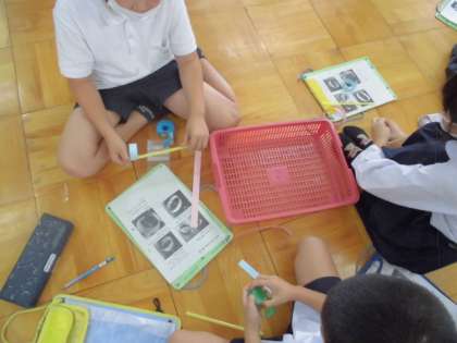 生活科で、紙飛行機を作っていました。太めのストローを使って画用紙を羽根にして作りました。
