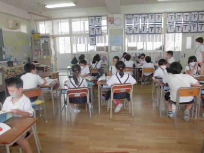 はじめに、先生の範読を聞き、はじめの感想をかきました。