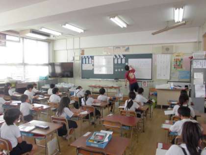 違った大きさの水のかさを比べる時には、どうするかを考えていきました。
