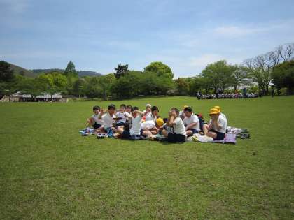 好天にめぐまれ、奈良公園に行ってきました。五重の塔をバックに記念撮影、東大寺の大仏殿では、大仏様の鼻の穴の大きさの柱の穴くぐりをみんなでしました。鹿は比較的少なかったです。楽しみにしていたお弁当は広い芝生でおいしくいただきました。