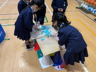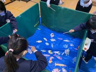 2時間目と3時間目に1年生と2年生が合同でおもちゃフェスティバルを行いました。