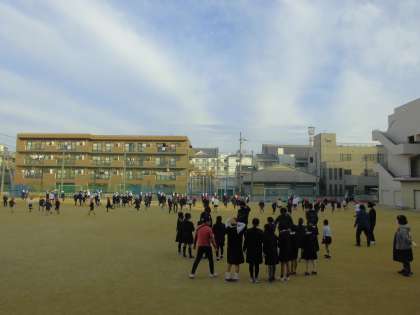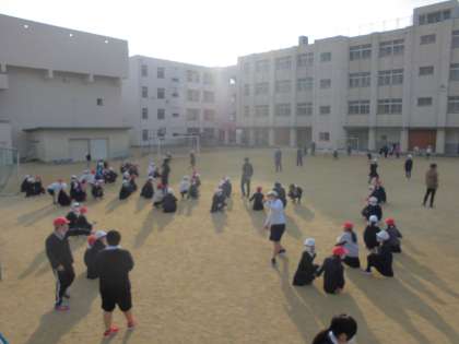 異学年がペアになればセーフ。残った子どもたちでタッチされると鬼が交代します。