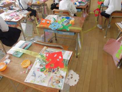 今日は、図工でハサミを使って「ちょきちょきかざり」をしました。
