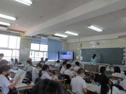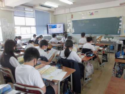 今日は、岐阜県海津市についての学習をしました。川に挟まれた輪中地域についての学習をしました。町の特徴を考えながら、しっかり学習できました。