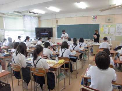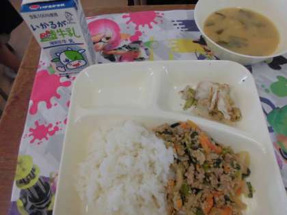 今日の給食の味噌汁は、だし昆布と削り節からとっただしを使って調理しています。