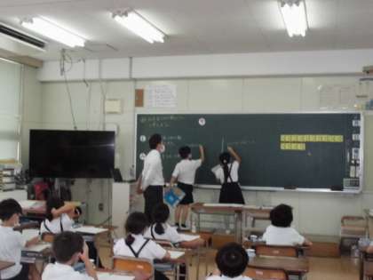 カードを使って学習していきます。また、子供たちも意見交流しながら学習を深めていきました。