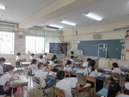 大阪府の西側には、大阪湾があること東側には山があることなど復習していました。