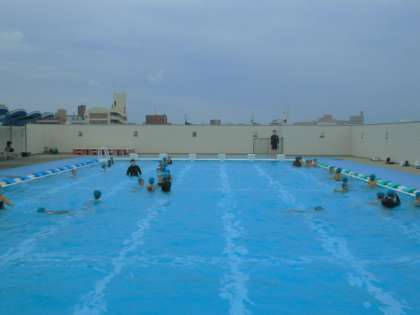 今日の水泳学習は、はじめに水慣れをした後、ビート板を使って練習しました。