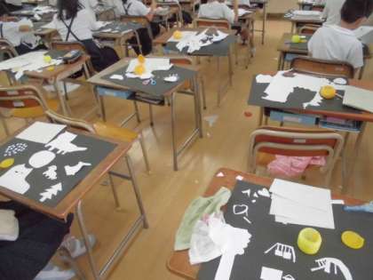 今日は、黒と白の画用紙を使って、自分の思いを表現しました。