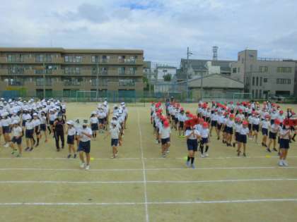今日は、123年生が1時間目に、4・5・6年生が2時間目に全体練習を行いました。
