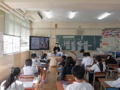 今日は栄養教諭の先生を招いて栄養についての学習しました。
