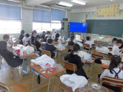 今日はいろんな箱やペットボトルなどを使って物を入れるものを作っていました。