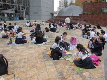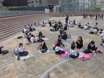 プラネタリウムを見た後、一度外に出てお弁当を食べました。