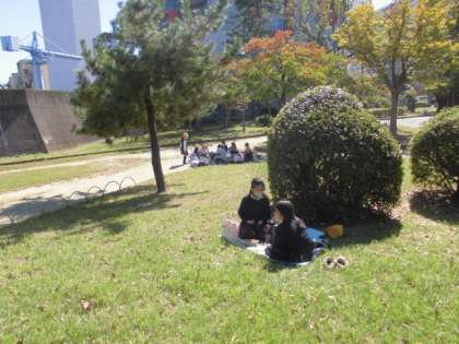 天保山公園に行き、日本一低いと表示された天保山に行きました。そのあと、昼食タイムです。
