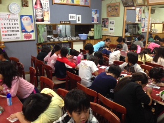 就寝前のひと時、はがきを書いています。